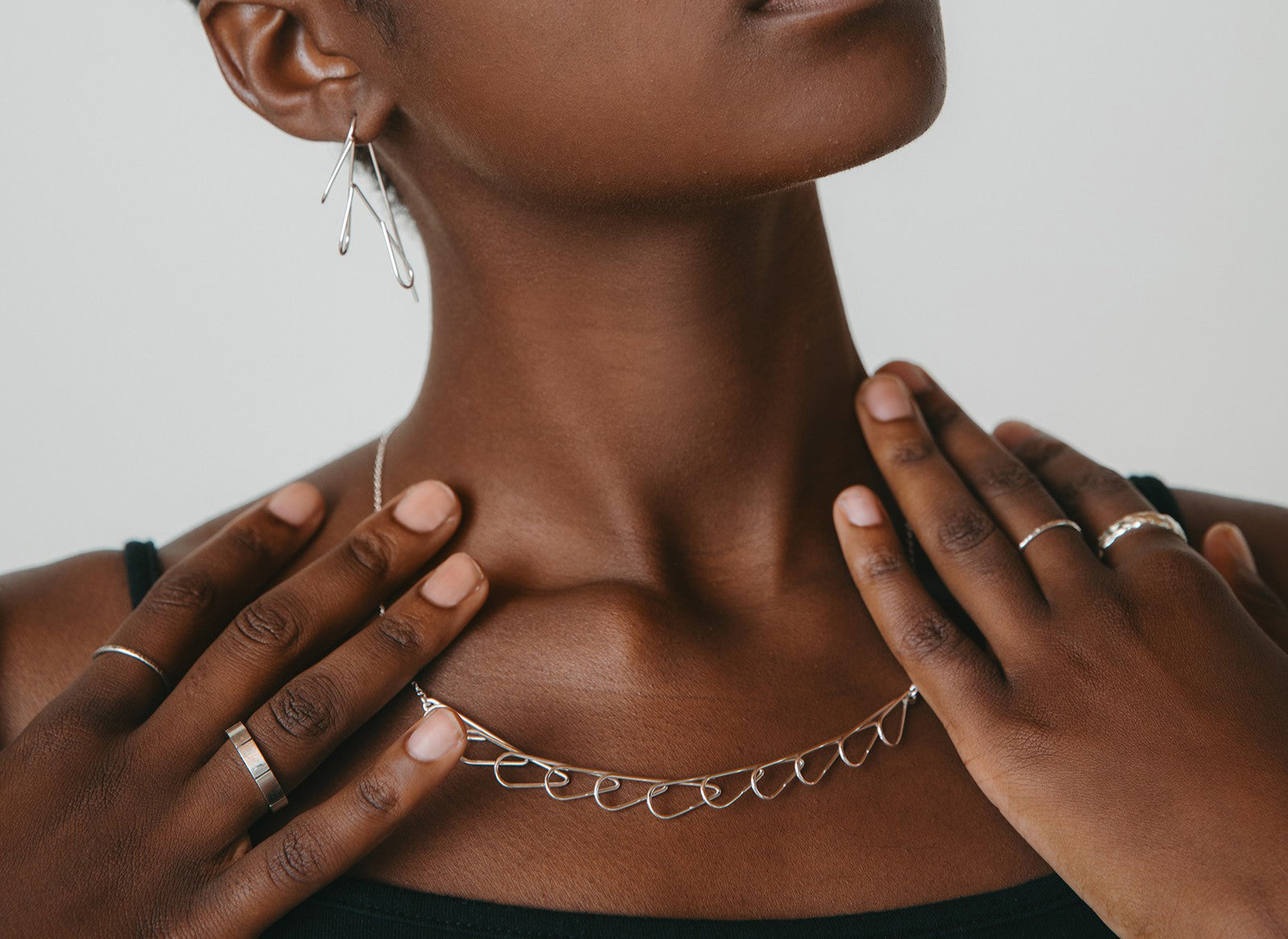 with fluid geometry, intentionally handcrafted and inspired by the elements of light, architectural forms, and abstract line art.